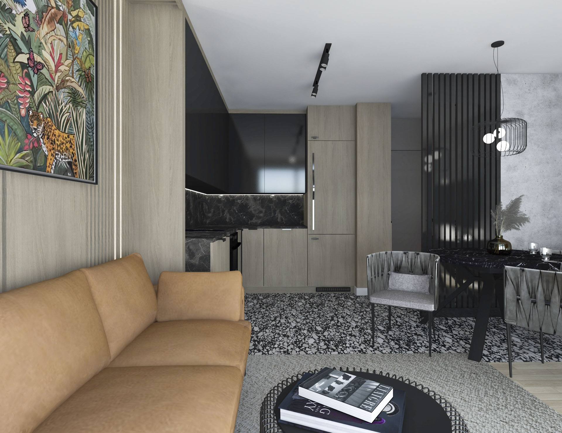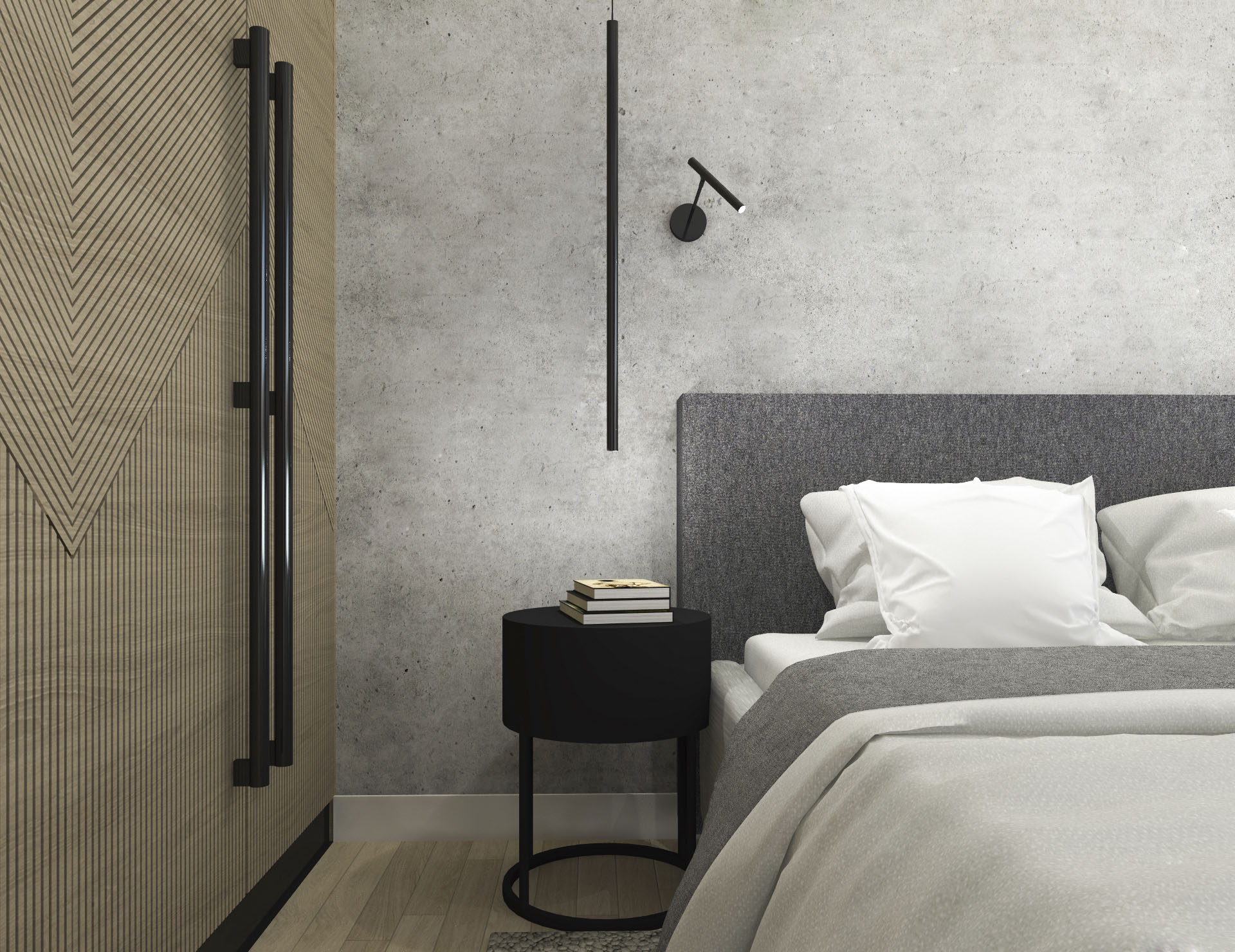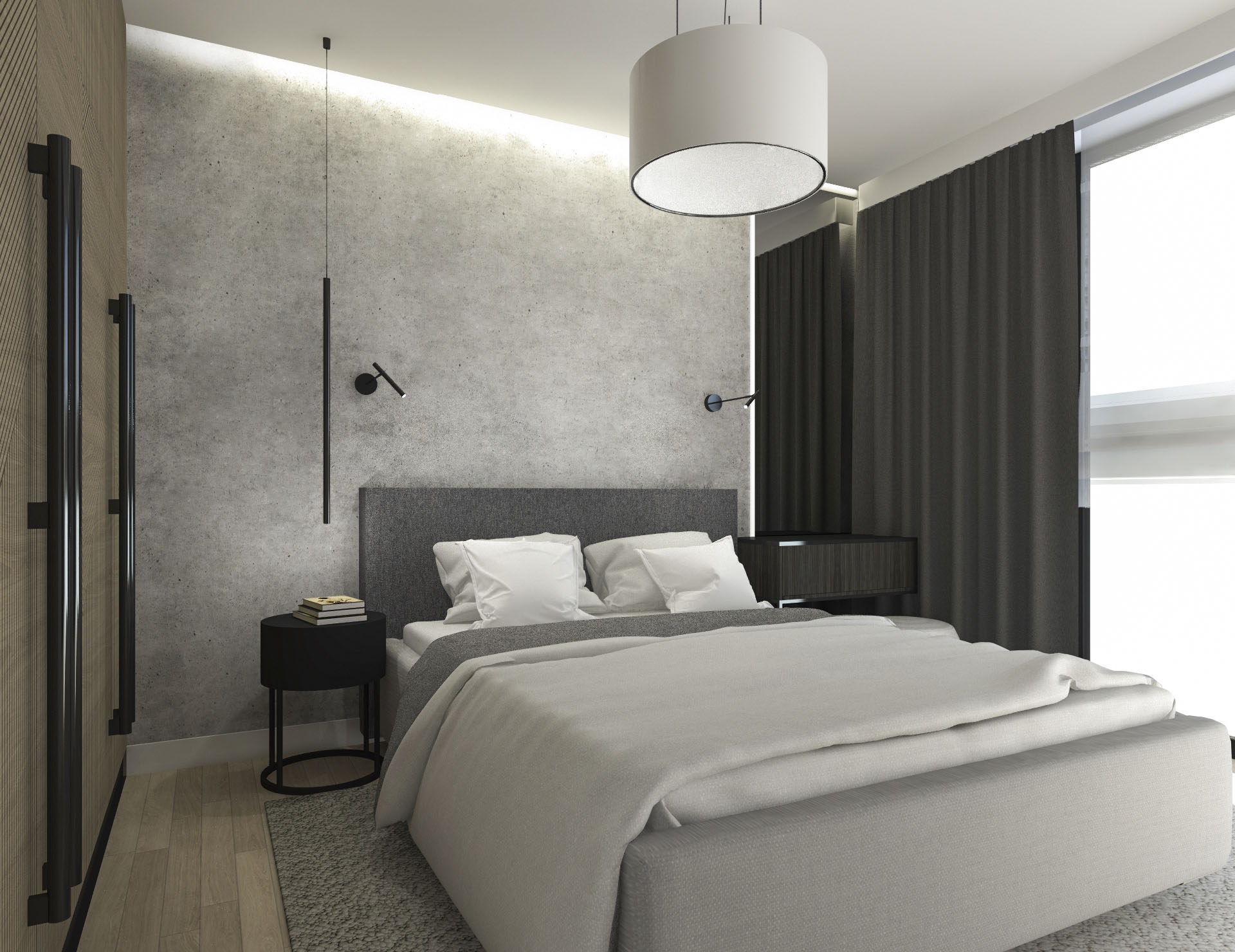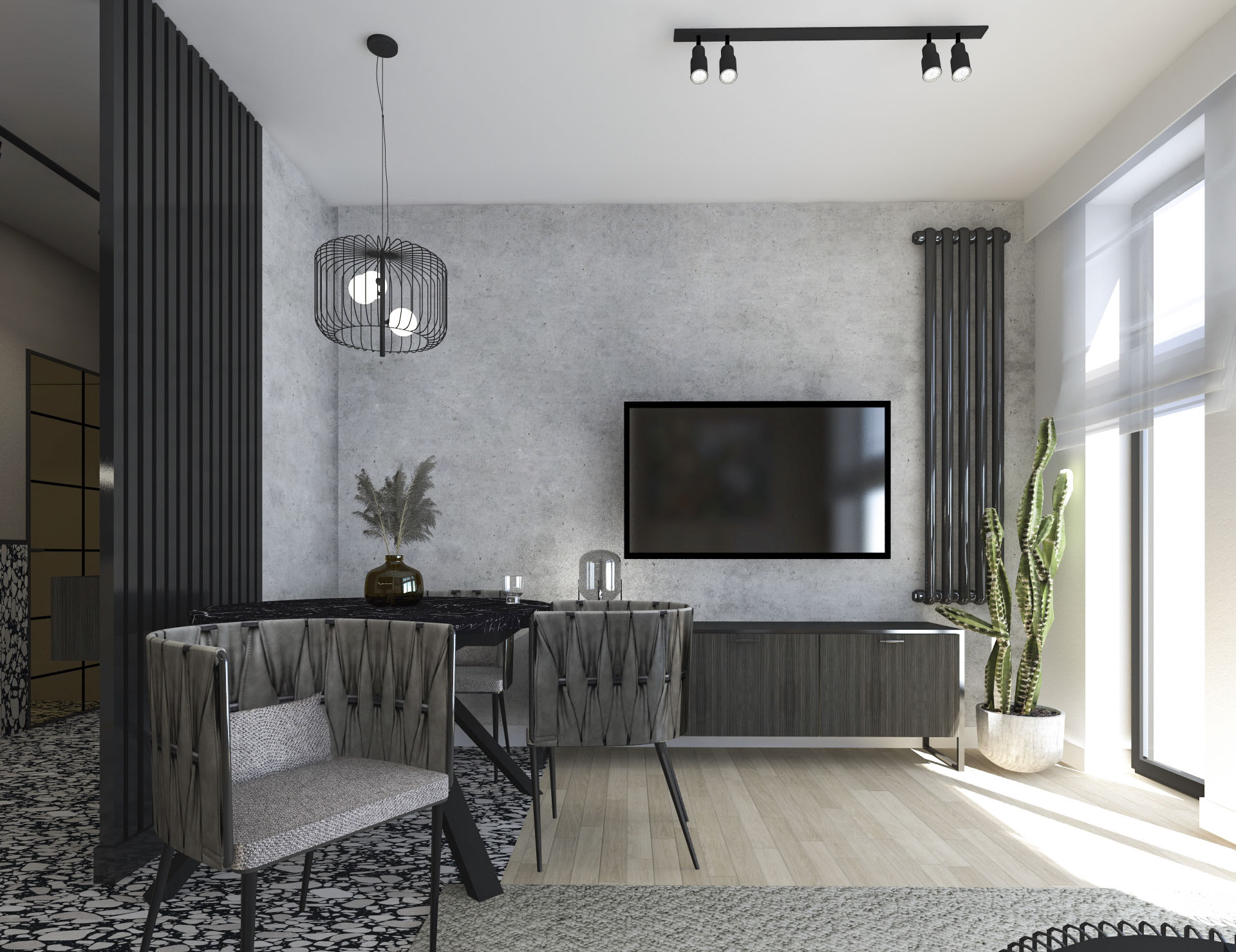 Projekt wnętrza dla pary, w stylu loftowo – industrialnym.