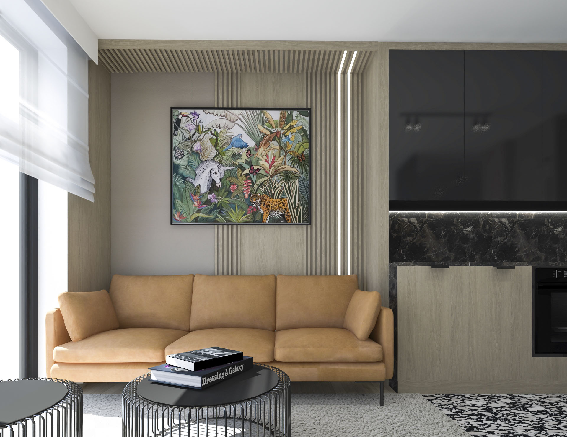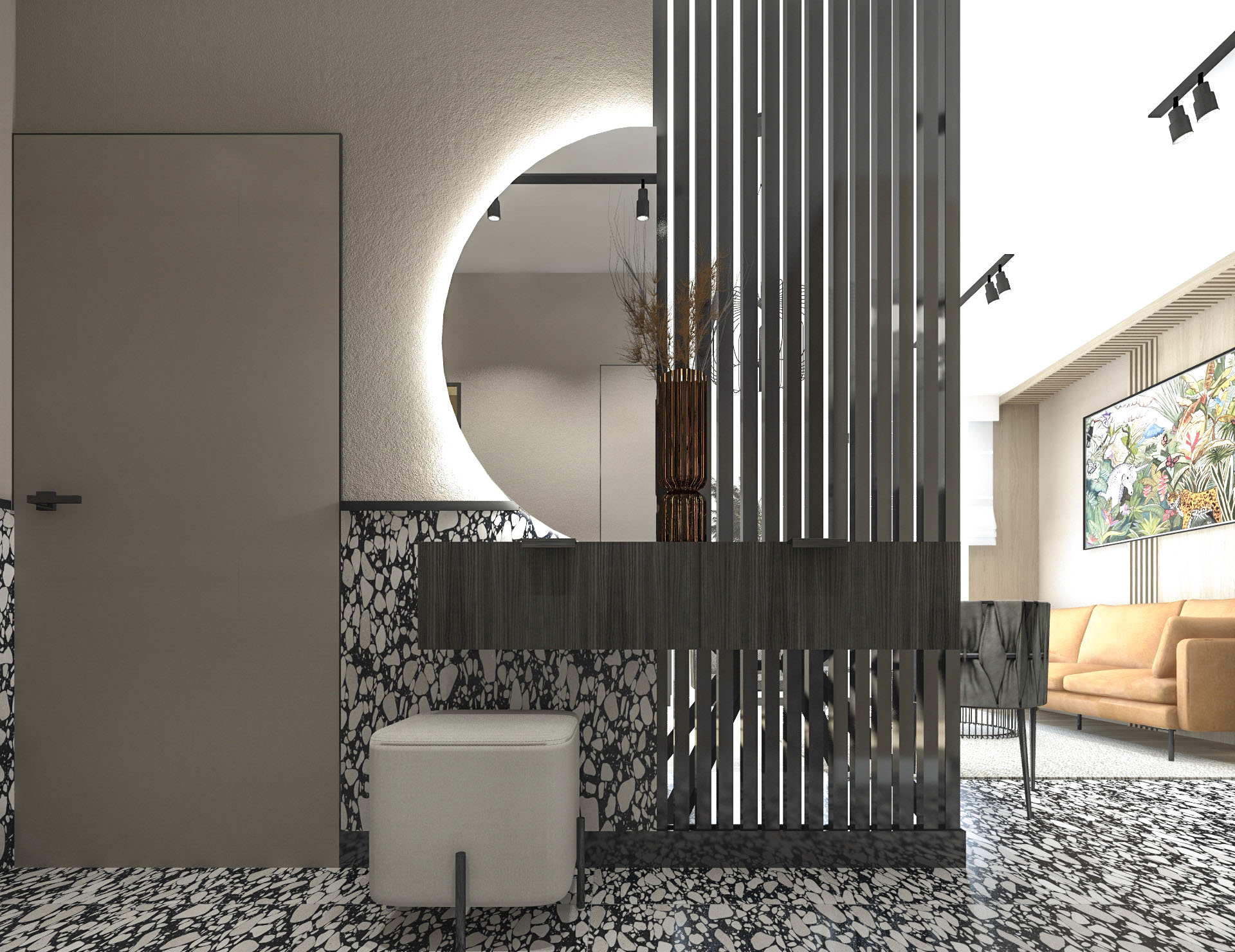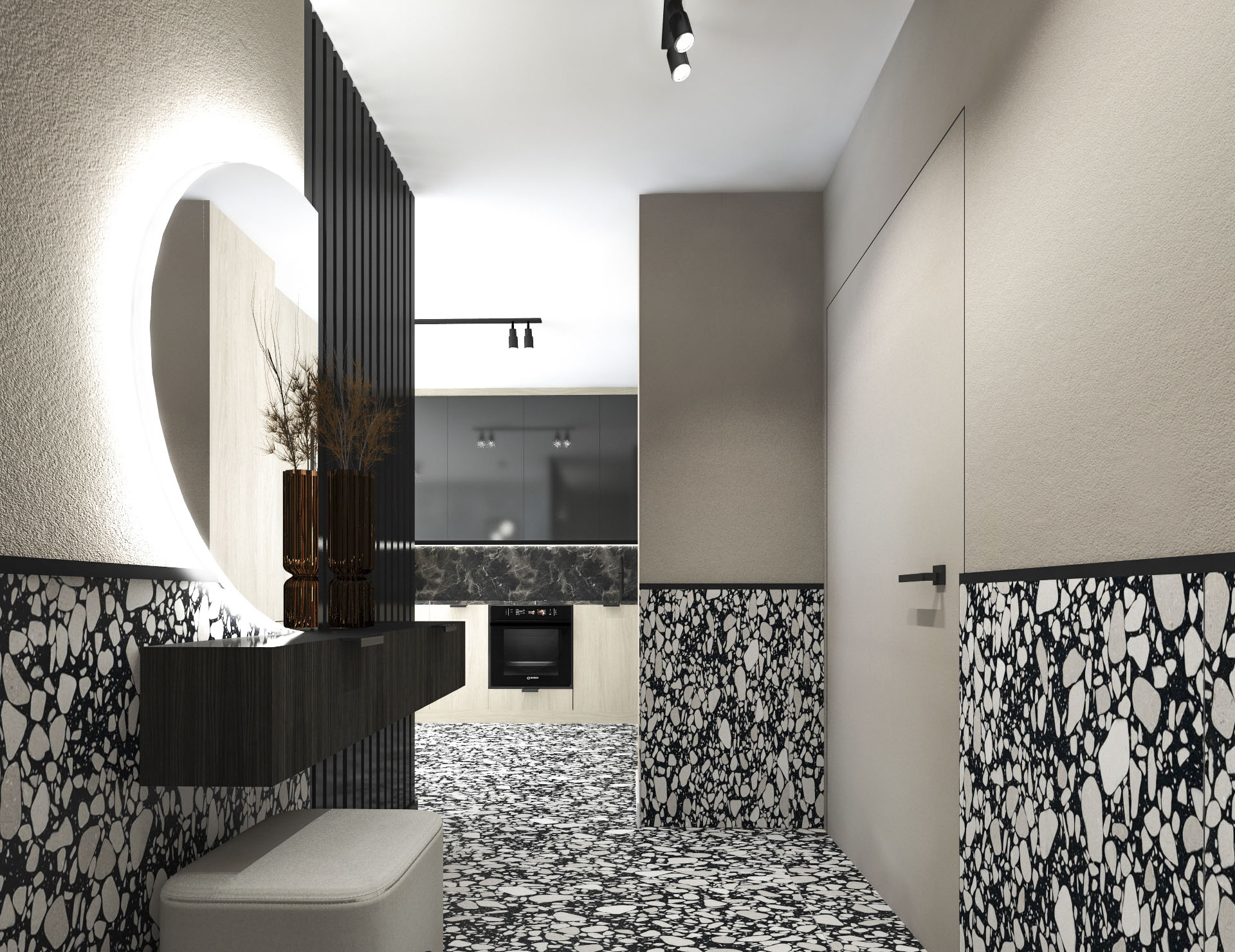 Projekt wnętrza dla pary, w stylu loftowo – industrialnym.