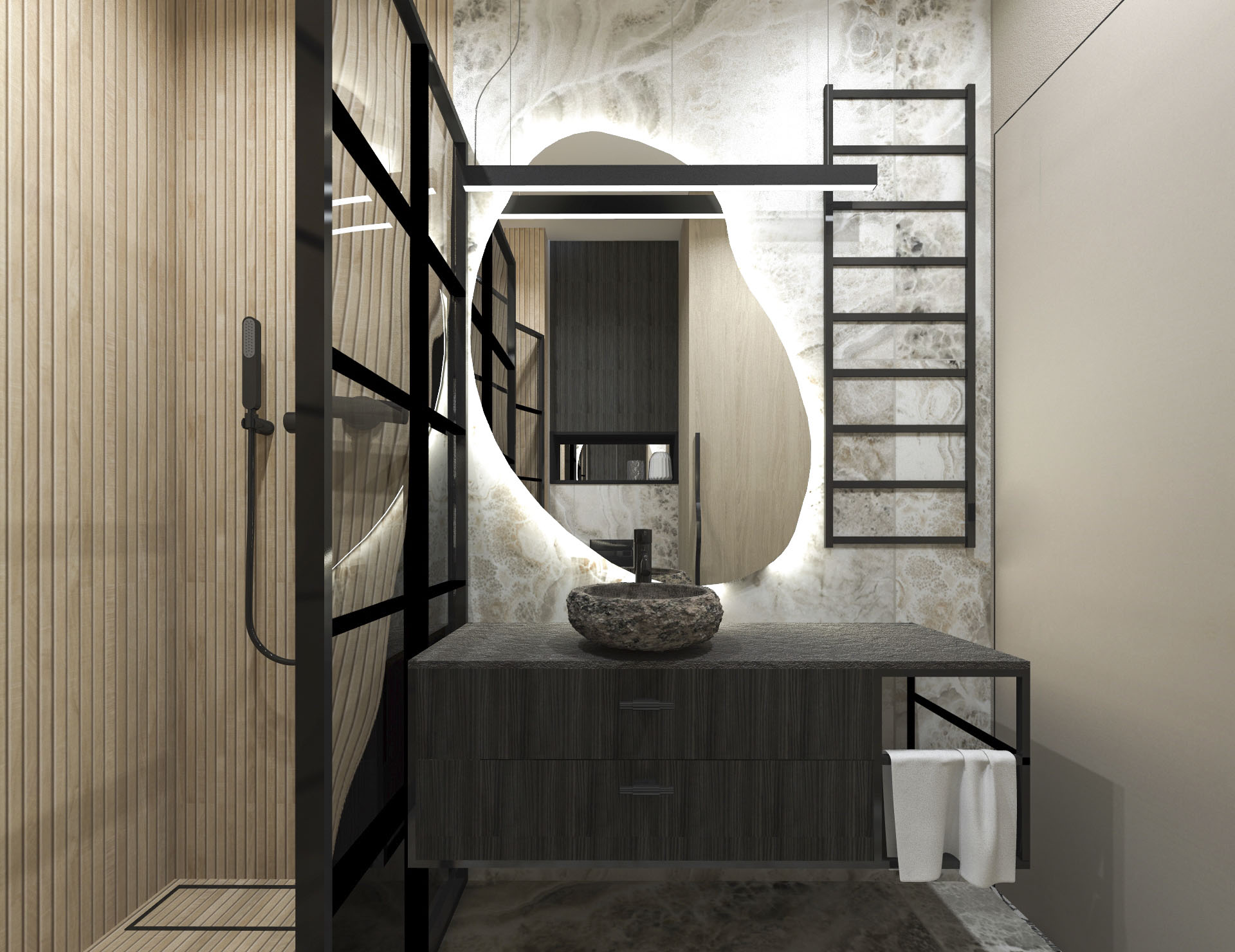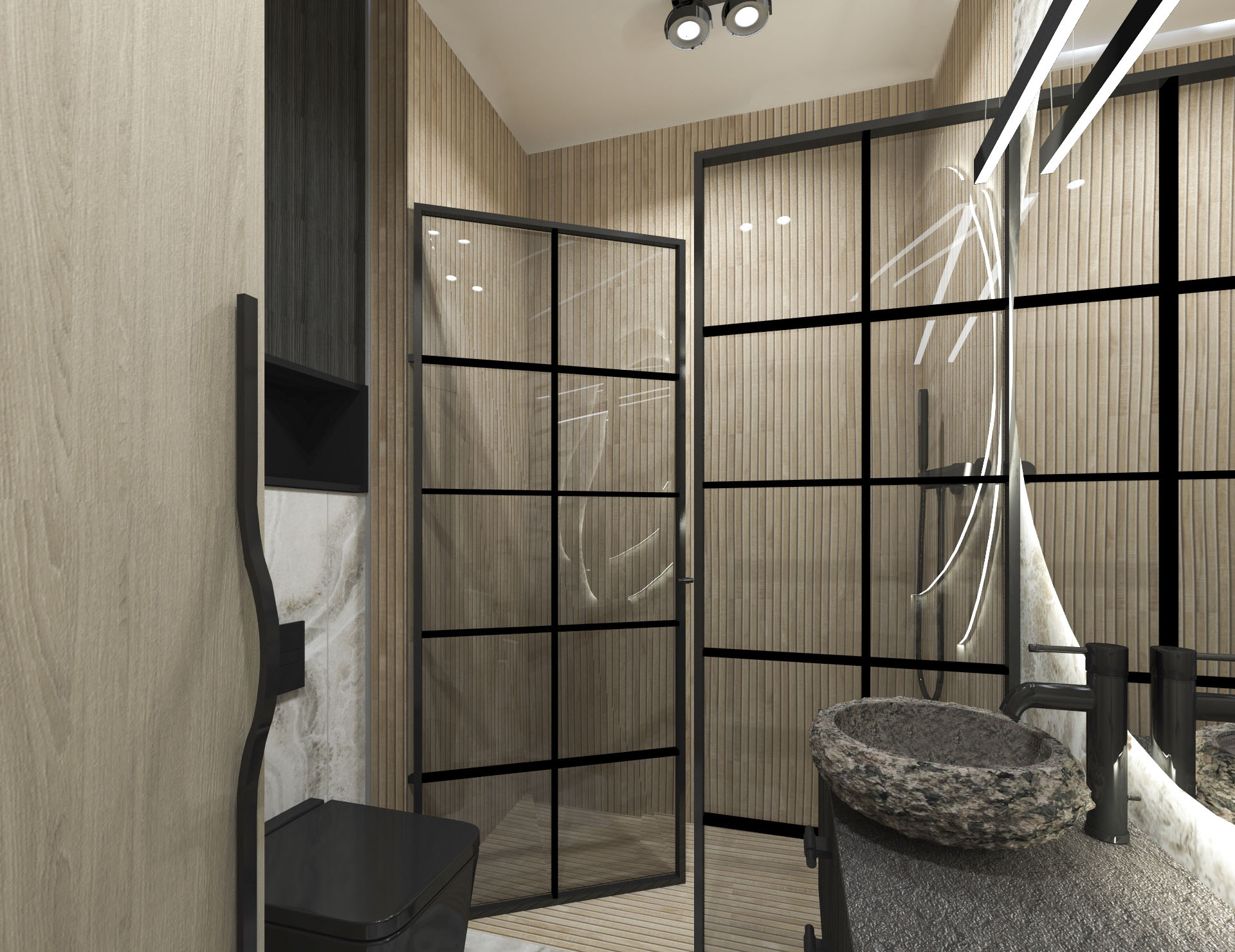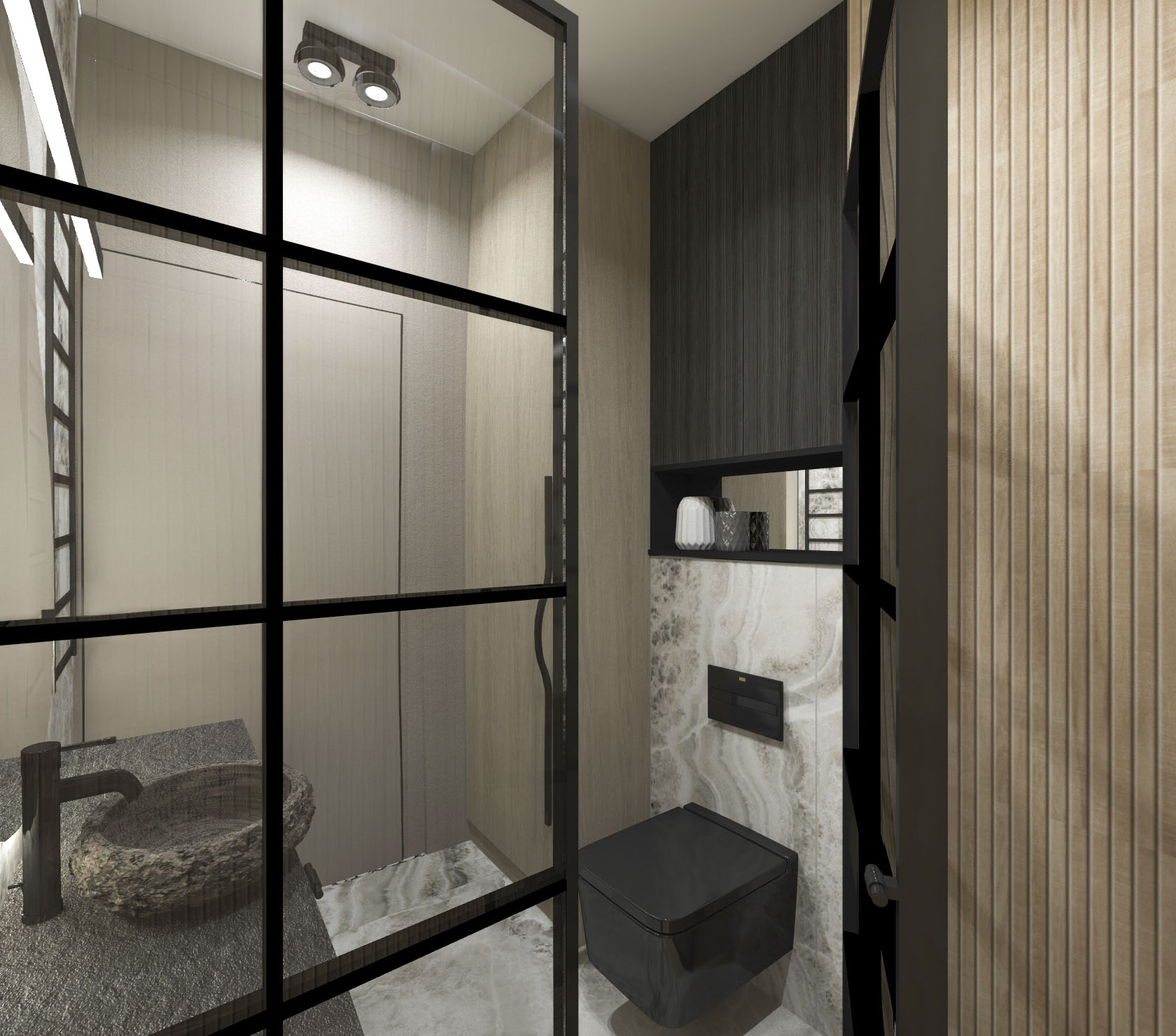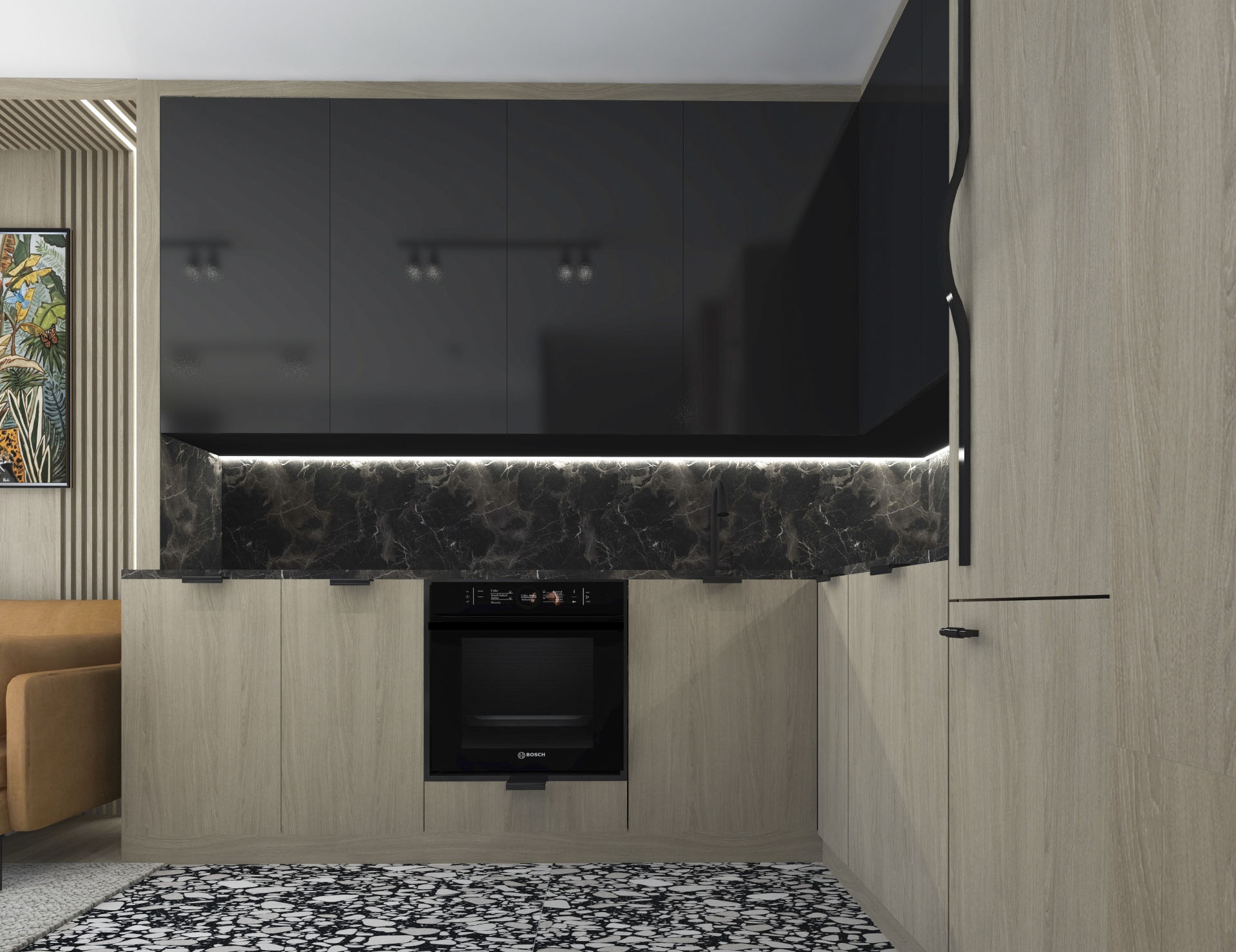 Projekt wnętrza dla pary, w stylu loftowo – industrialnym.